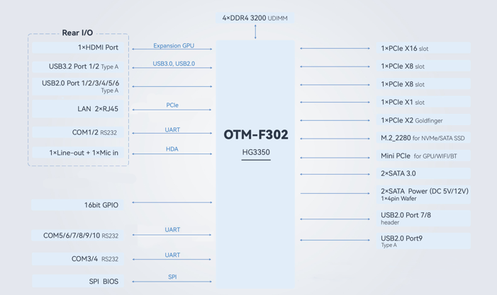 OTM-F302是一款既能满足高性能计算、又具备灵活扩展能力的主板。不仅支持自主研发的Mini PCIe显卡和PCIe扩展显卡,还能通过X2金手指扩展ATX版型,同时兼容Windows与国产操作系统,助力客户无缝迁移至信创平台。